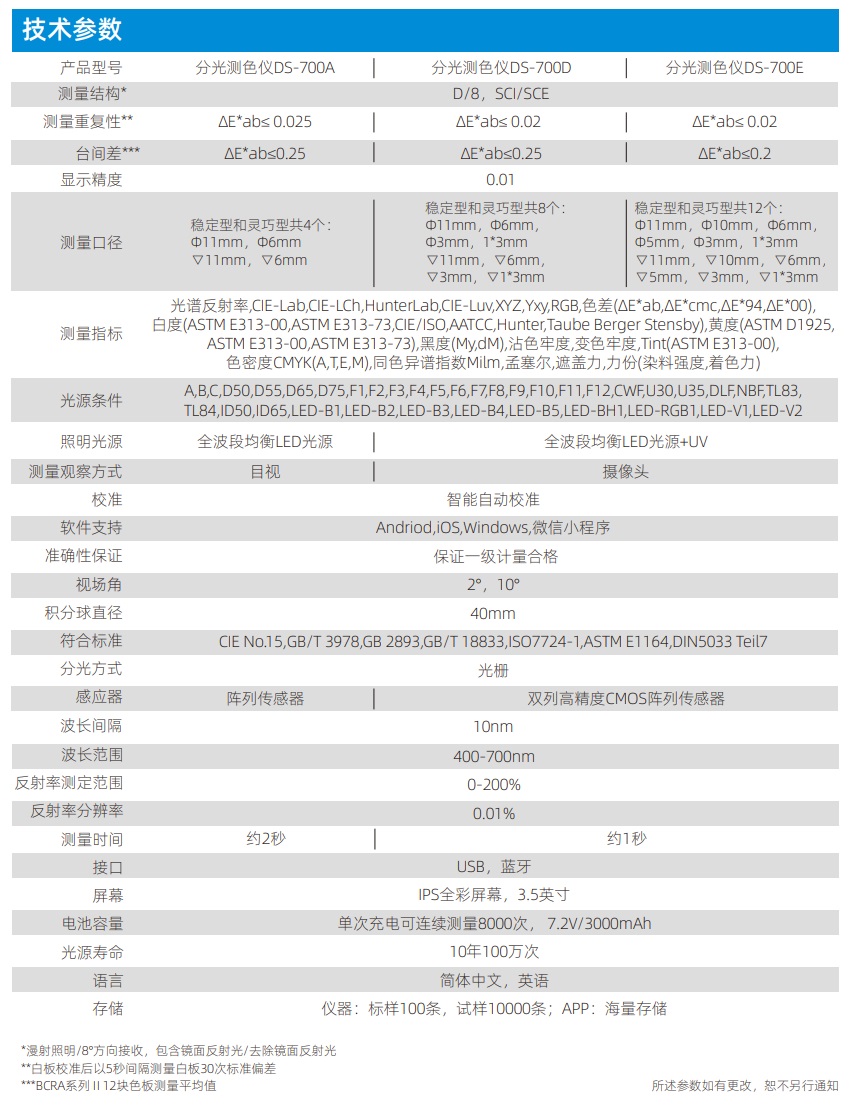 便攜式分光測色儀DS-700A/D/E