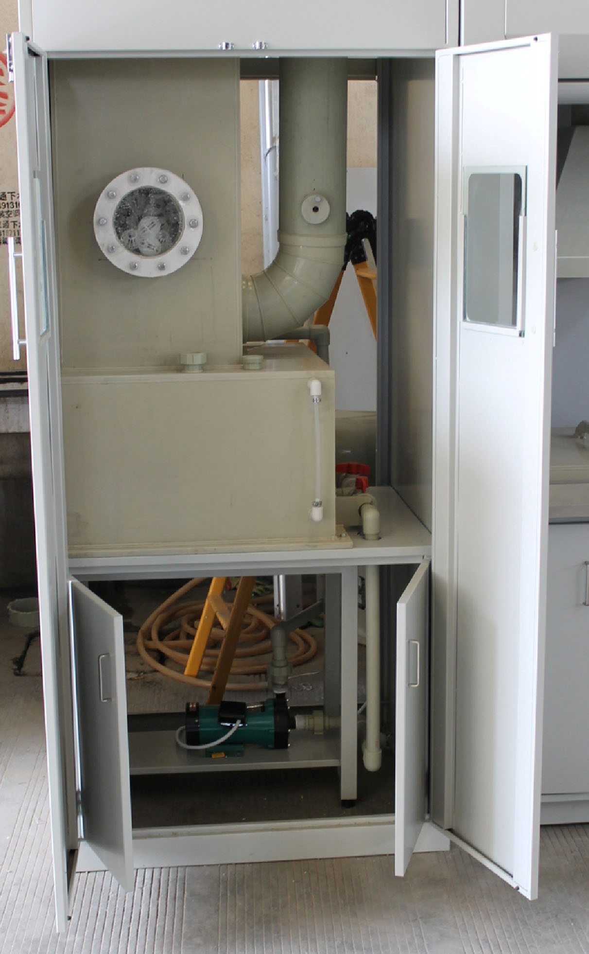 該系統(tǒng)由排風柜和酸霧中和裝置兩部分組成,可和低倍酸蝕裝置集成為一體。