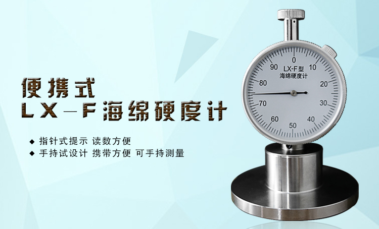 LX-F海綿硬度計是本廠為了方便客戶測量泡沫材料的硬度而特殊定制的硬度計,它適用于測定軟的泡沫材料,聚氨脂泡沫膠料制品硬度,這種海綿硬度計與其他硬度計在測定使用方面有所不同,在使用時,壓腳直接在試樣上接觸,并利用它自己的重量作為測力負荷。