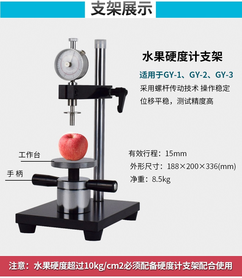 GYJ水果硬度計支架,專為GY-1、GY-2、GY-3三種型號的水果硬度計配備,進行準確的蘋果、香蕉、梨、西瓜等多種水果硬度測試。
