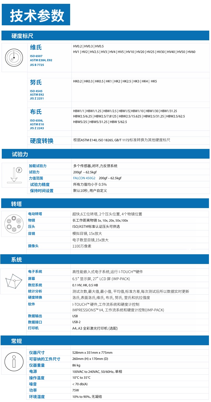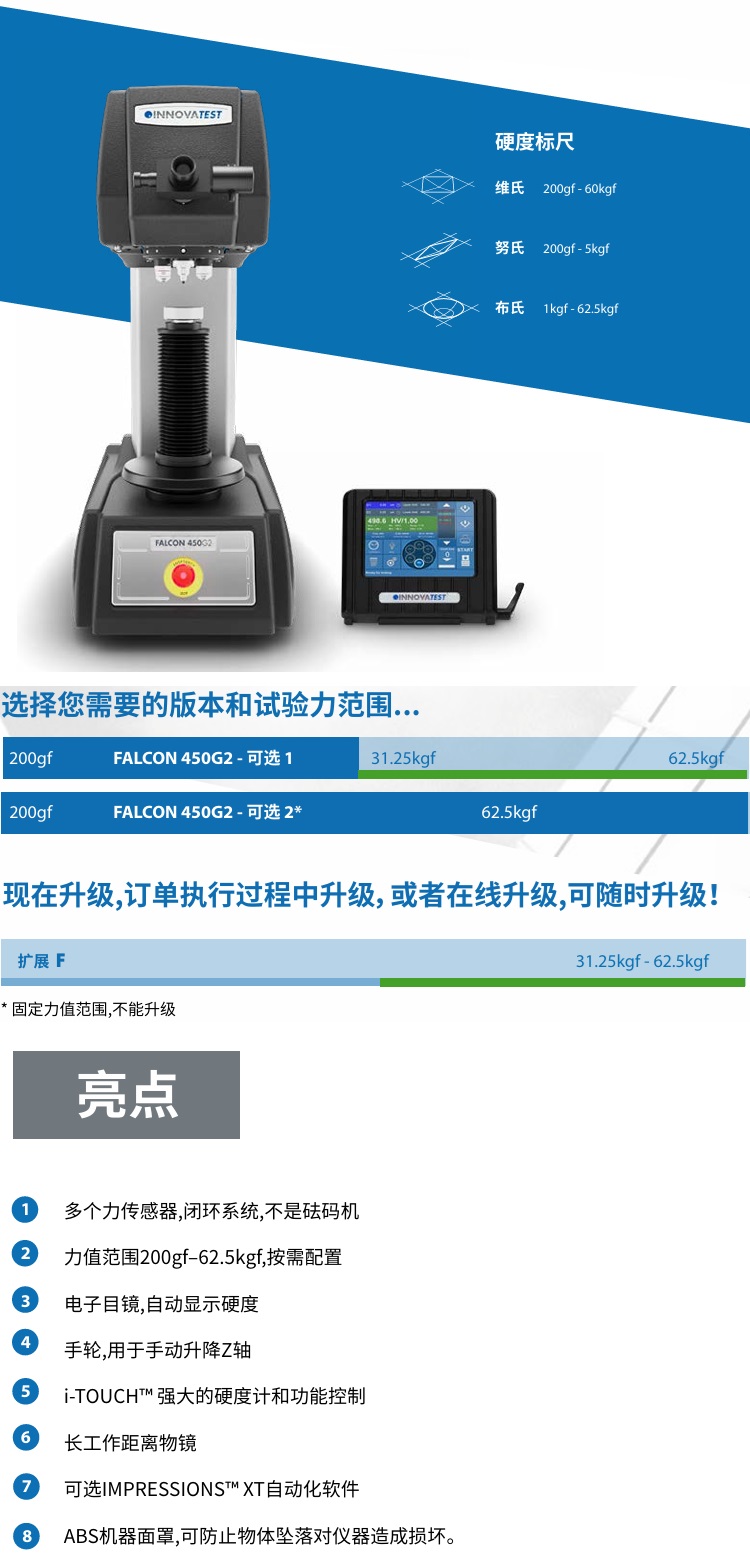 FALCON 450系列顯微維氏,宏觀維氏,努氏和小載荷布氏硬度計屬于新一代硬度測試儀器,改進了傳統硬度測試方法,有效地消除了測試過程中的人為誤差。